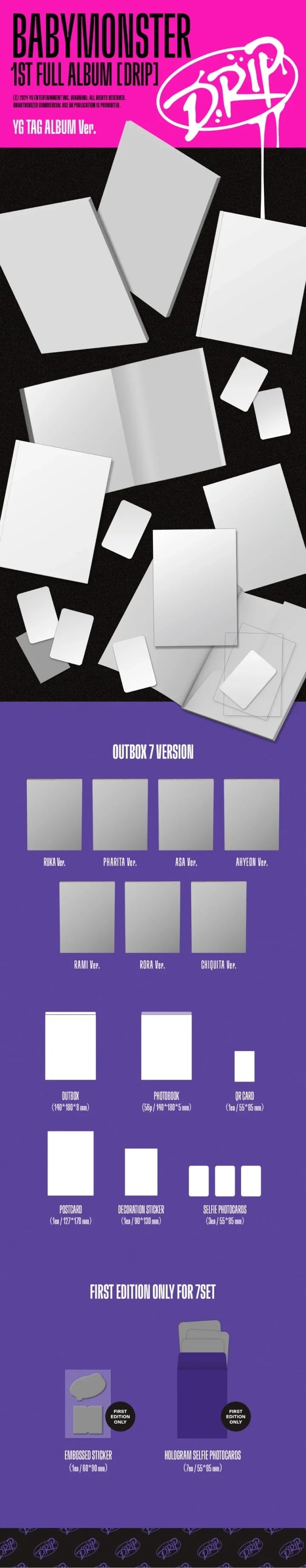 - 7 hologram selfie photocards + 1 embossed sticker per YG Tag Album SET