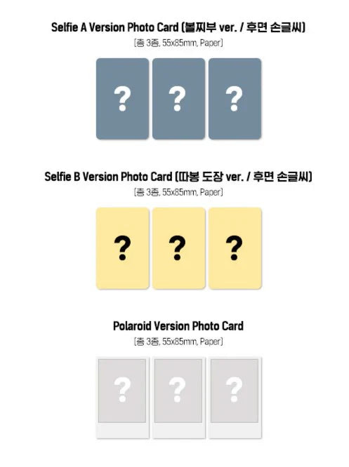 - Photo Card: 55*85mm / 2 out of 4 randomly inserted (same image for each version)